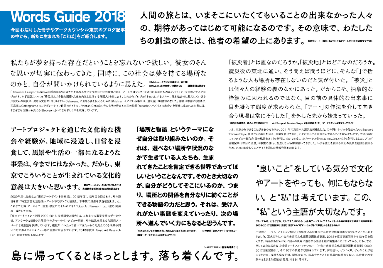 多種多様な形態で、それぞれ異なる目的をもつドキュメントブックを、どのように届ければ手に取ってくれたり、効果的に活用したりしてもらえるのか。アートプロジェクトから生まれた発行物の届け方を研究・開発して生まれた、「言葉」を届けるためのメディアです。