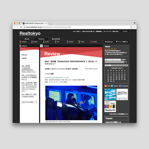 講座で取り上げたイベントについて、ゲストライターおよび受講者が書いたレビューをウェブマガジン「REALTOKYO」に掲載しています。