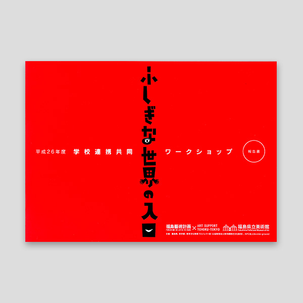 福島藝術計画 × Art Support Tohoku – Tokyoによる事業で実施した「学校連携共同ワークショップ」の記録集。「不思議な世界の入り口」を標題として、イラストレーター・グラフィックデザイナーの酒井賢司氏と、画家の鴻崎正武氏を招き展開しました。