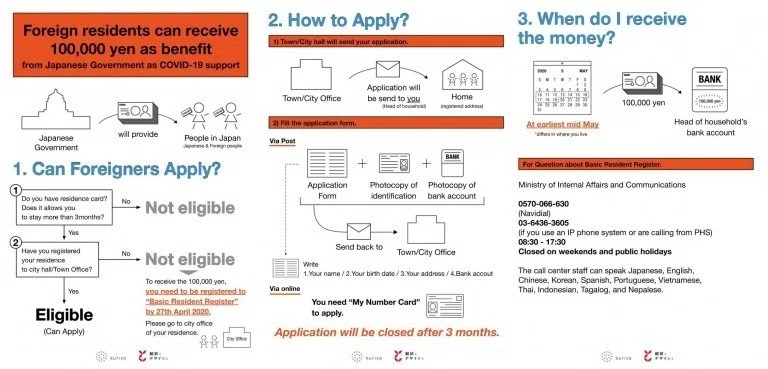 また、SNSや英語でのニュースを情報源にしているというレポート結果を受け、特別定額給付金に関する情報のシェアを始めました。給付金の申請や仕組みについて英語と図解でわかりやすくまとめられた資料は、Facebookページの投稿からご覧いただけます。