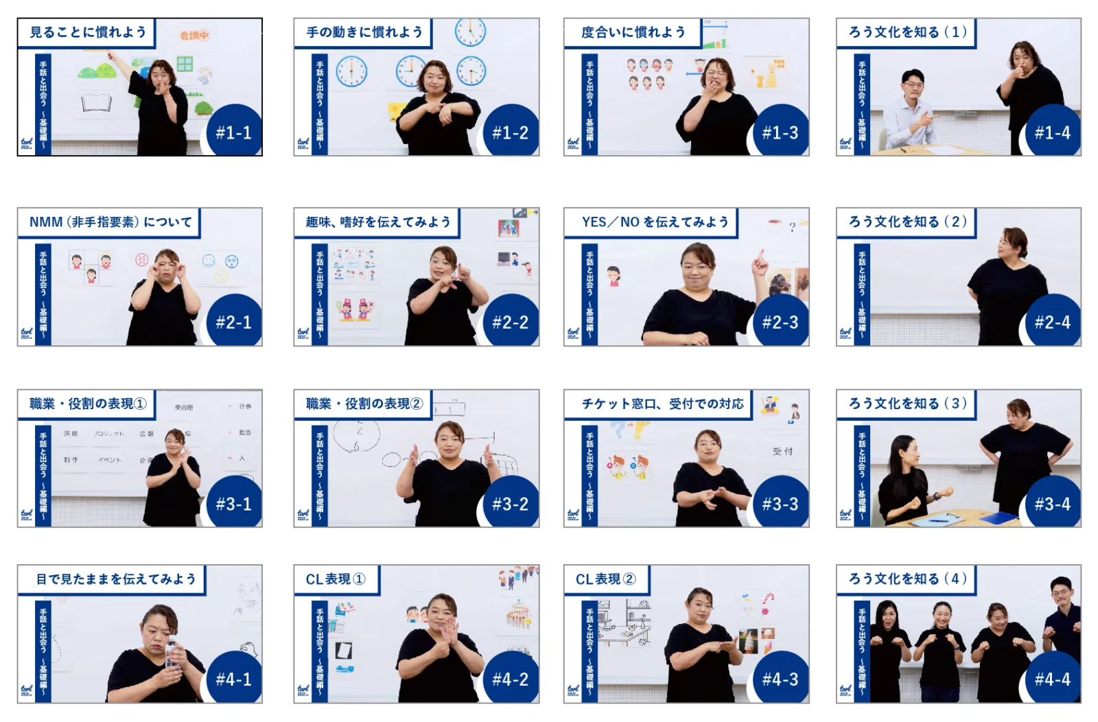 各テーマの最後には「ろう文化を寸劇で紹介する特別編」を用意し、肩の力を抜いて手話やろう文化に触れられる工夫をしたほか、映像で得た学びを復習する初心者向けオンライン講座や、さらには現場で実際に手話をつかうことを想定した中級者向けオンライン講座も開講しました。