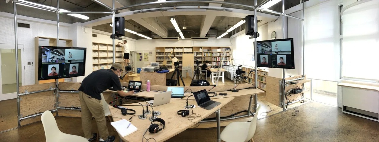 第1回に向けて準備は入念に行った。講師や手話通訳士の立ち位置はどうするか、モデレーターの位置はどこか。カメラはどこから撮影し、スタジオのモニターはどのように使うか。もし接続できない人がいたら、こちらが接続が不安定になったらどうするか。具体的にシミュレーションしながら、実際にテスト配信をした。これら配信・機材関係を一挙に対応してくれているのは、NPO法人Art Bridge Instituteの齋藤彰英さん。本レクチャー記録・運営担当として、毎回サポートしてくれている。オンライン講座では、何かあったときに即座に対応できる運営体制が必須だ。とても心強い。