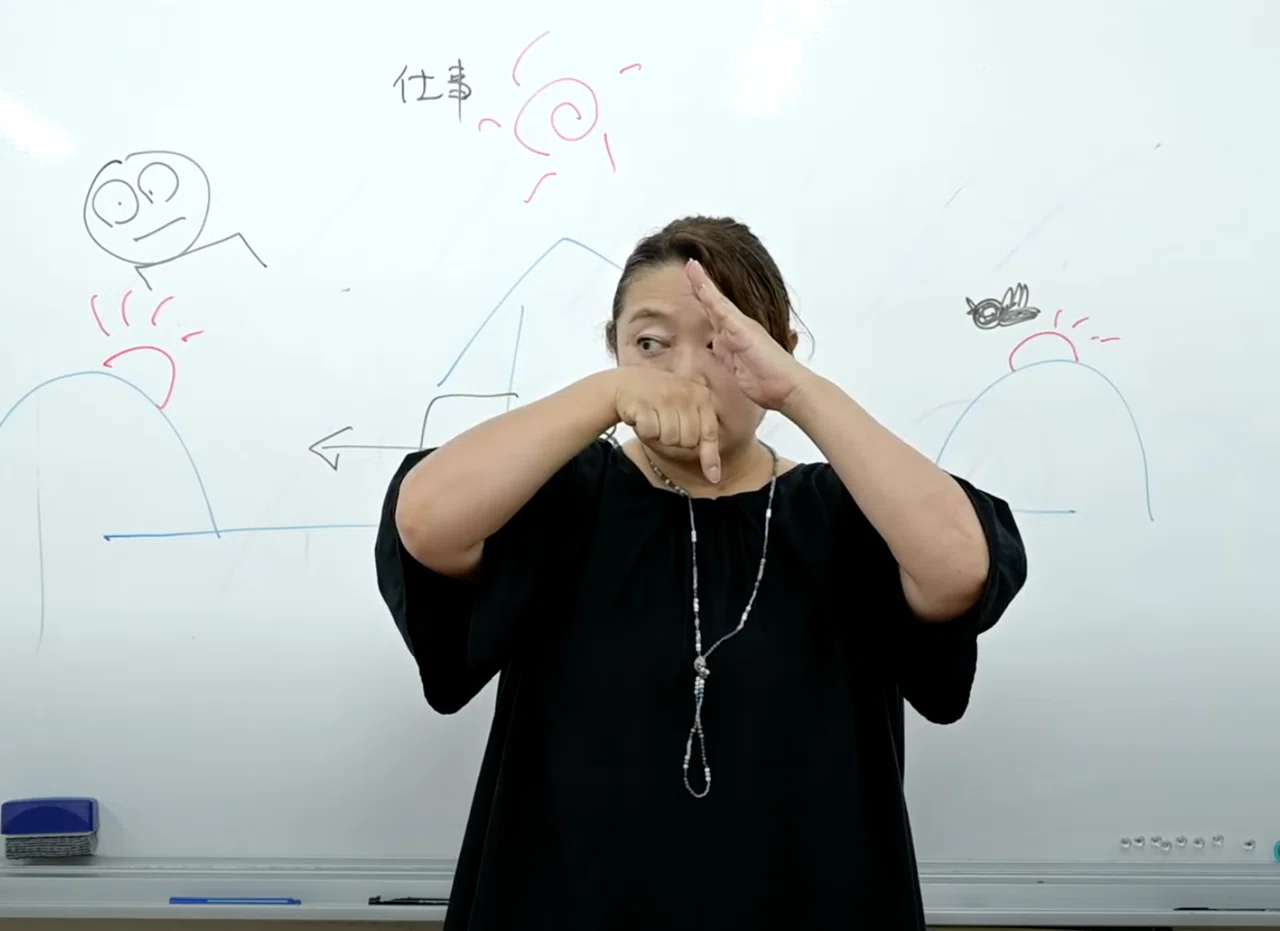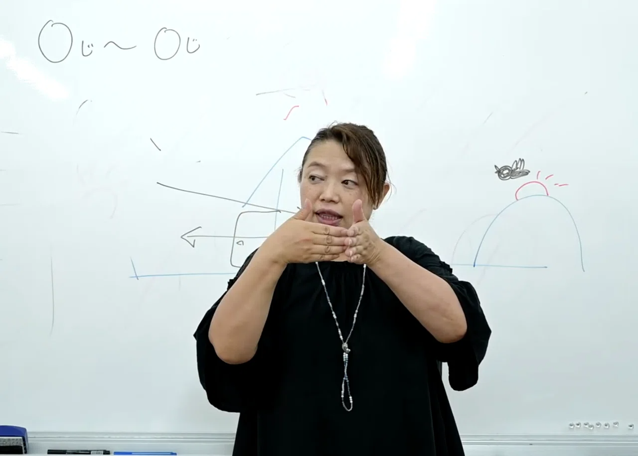 その他にも、●時〜●時まで(=時間を表し「〜」は指でそのまま空に書くので良いらしい)、はじまる(=両手の手のひらを相手に向けて、わ〜!と開かれていく動作)、終わる(=両手で炎がしゅぅっと消えていくようなイメージの動作)を学んだ。それによって、「今日は、朝、何時に起きましたか?」「今日は何時に帰宅する?」など前回学んだ手話とつなげて会話ができるようになってくる。